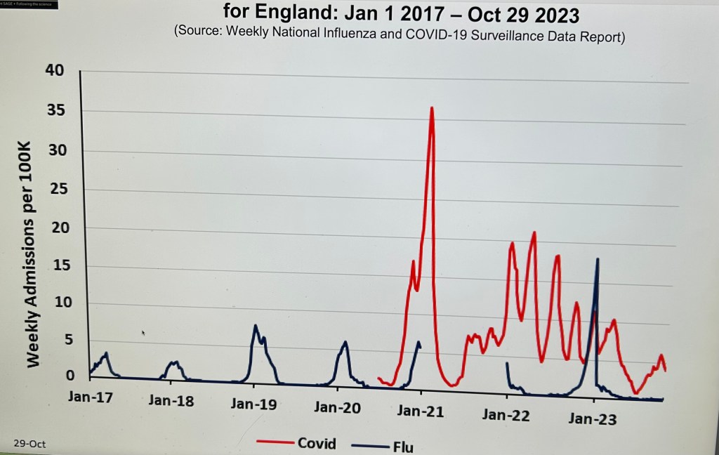 A chart in the story showed the recorded winter deaths from Covid and flu between October 2022 and March 2023 where deaths from flu outstripped the Covid death toll.