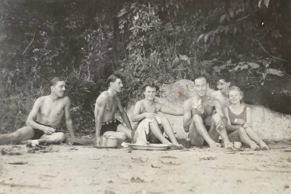 Eileen spent well over a year in Singapore and Malaysia and there is evidence that she took some leave with other members of her unit in July 1946 and we believe from other labelled photos that the above was taken at MoonLight Bay, Penang Island which is not far from Kuala Kangsar.