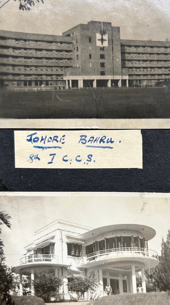 Eileen then moved on to Johore Bahru 8th I.C.C.S. Johore Bahru (just above the Singapore Strait) and Kuala Kangsar (North of Kuala Lumpur) where she nursed many former Prisoners of War from the work camps in what was then called Malaya, and Burma.
