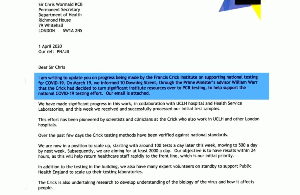 It is not at all clear from the evidence whether Nurse’s proposal was simply overlooked or whether there was open hostility from within government. What is not in doubt is that Nurse was lobbying the Government about the issue from an early stage. See the following piece of correspondence addressed to the then Permanent Secretary of the DHSC (now Cabinet Secretary) for example.