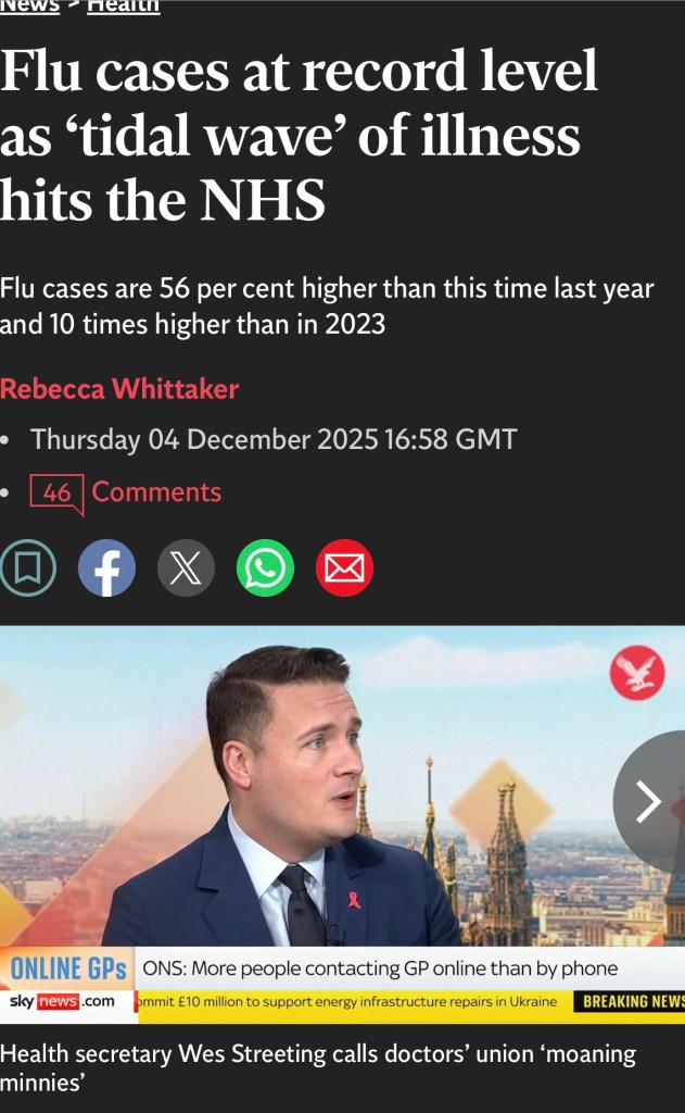 Hospital admissions with flu surged last week and there are no signs that rates of infection have peaked. This was entirely predictable as this summer saw the emergence of a new and nasty flu variant resulting in high levels of infections and illnesses across countries in the Southern Hemisphere, including Australia. We know from experience that what happens in Australia in the British summer, particularly regarding strains of and levels of flu, is usually a good indication of what could potentially hit the UK in our Autumn and Winter.